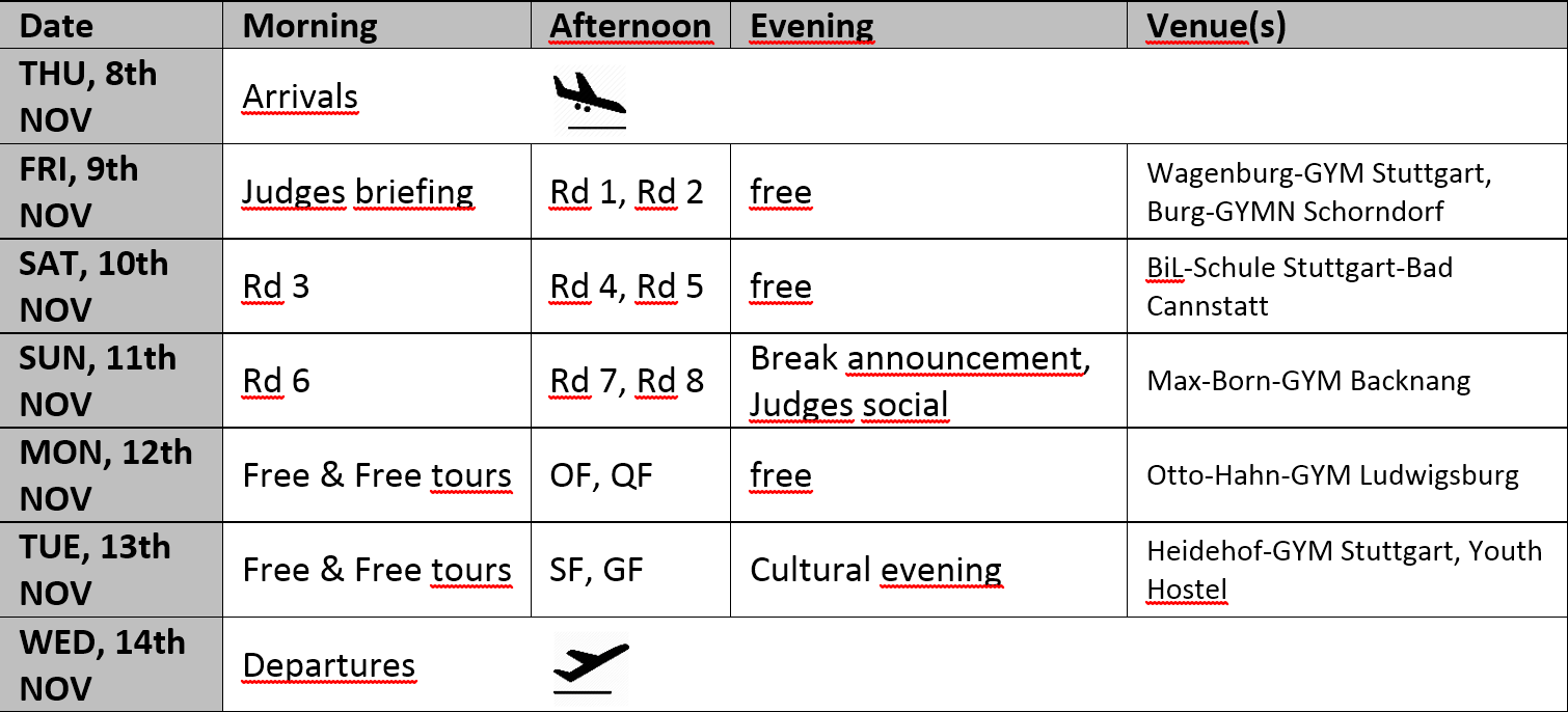 Schedule --> Downloadable detailed schedule EurOpen 2018 <-- --> Venue split on FRI (which team goes where?) <-- Simplified tournament schedule 2018: